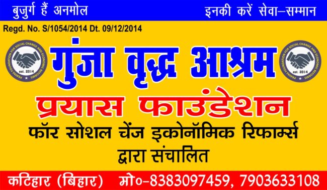 Prayas Foundation For Social Change & Economic Reforms, Ward Number 21, Anathalaya Road, (Near Bachha hospital). Katihar (Bihar), Pin- 854105.